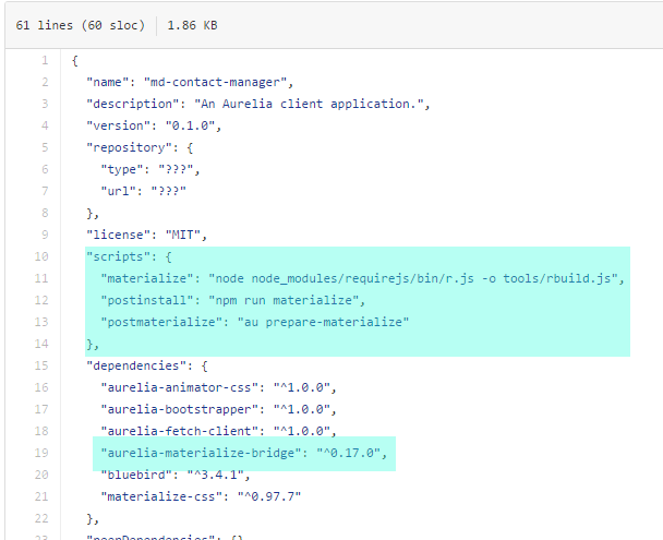 This document is not a tutorial on Materialize bridge base application development - check Aurelia Materialize Bridge to learn more. Similarly this document does not teach you about RequireJS module loader. Instead it will show you how to manually enhance the original Contact Manager tutorial to use Materialize bridge and render its view using Aurelia Materialize components, instead of using Bootstrap.